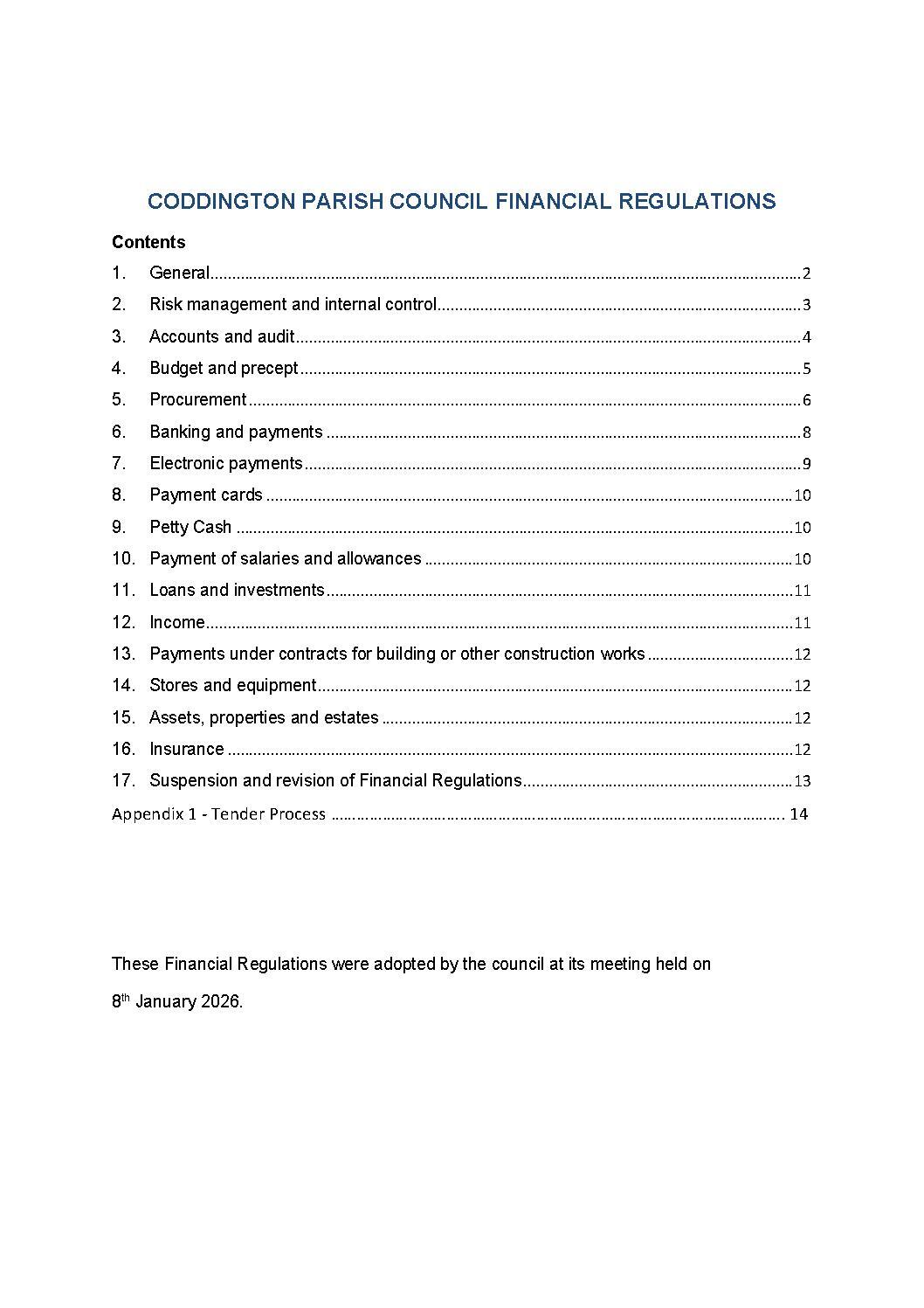 Financial Regulations – Coddington PC 2026, Issued: 12/01/26