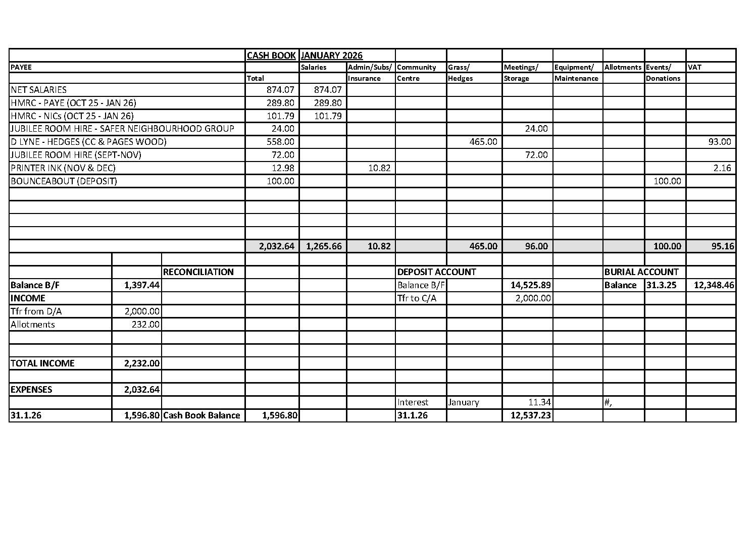 CASH BOOK JANUARY 2026, Issued: 03/02/26